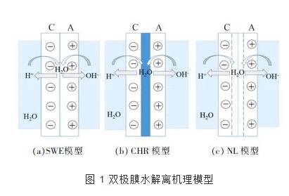 以上提出的水解離物理模型具有一定的假設和適應范圍,存在局限性。swe模型僅適應電壓為107~108 v/m的體系,且假設了雙極膜中間層是尖銳結合而成的結構;chr模型考慮了雙極膜的實際結構和膜上荷電基團會使水發生解離,但無法解釋與swe模型計算出的數值間較大的差距;nl模型只能用于明顯存在中和層的體系。